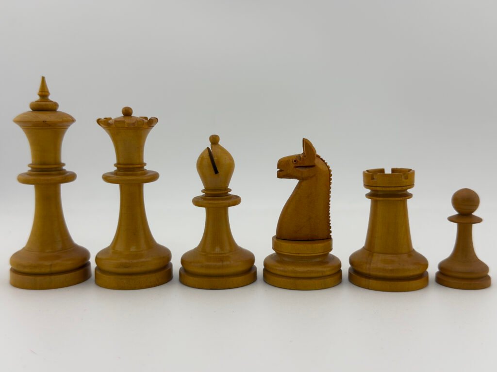 The American Chess Company set is, without a doubt, one of the most enigmatic and fascinating designs in chess history. As an avid player and collector, this set has captured my imagination like few others. Its origins remain shrouded in mystery, though we know it was sold through an American company, it’s unclear whether the pieces were actually designed and produced in the U.S. or imported from somewhere else. Some speculate that the set could have been crafted in countries like France, Germany, or even Russia, based on the distinctive finials, especially the spired design of the king. These details suggest a European influence, but the true story behind its creation remains elusive.