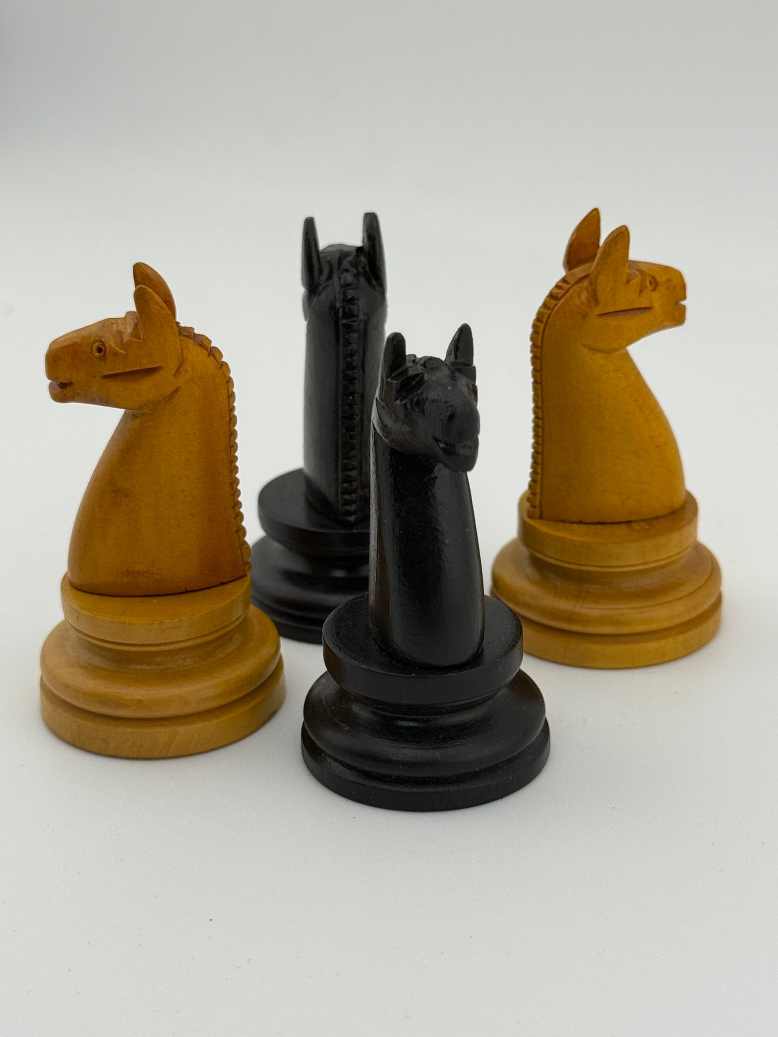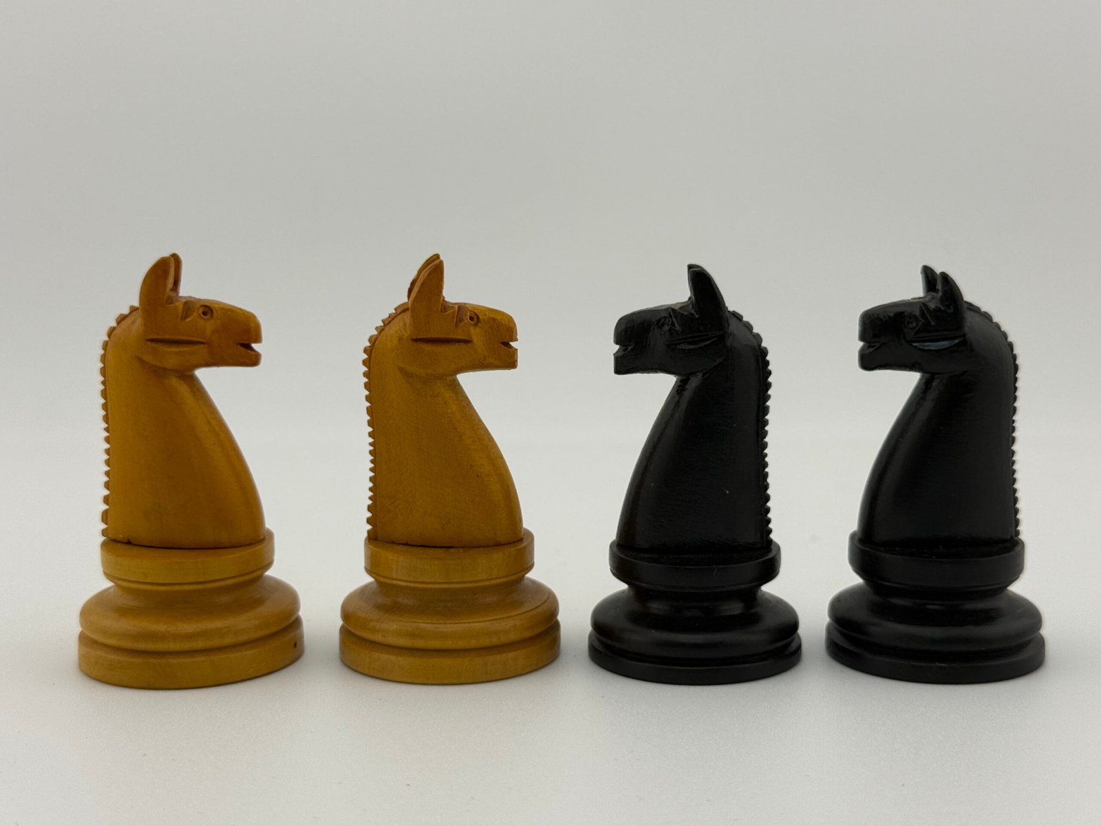 The craftsmanship is stunning, the spired king is iconic, the knights have a charm all their own, and the overall design speaks to an era of chess when artistry and functionality went hand in hand. This ACC is in amazing condition (one of best I have seen for an ACC) and has survived with it’s most delicate parts (knight’s ears and kings Finials). The rarity of the set only adds to its mystique. I find myself constantly on the lookout for another American Chess Company set to add to my collection, though I know these sets are becoming harder and harder to find as more collectors snatch them up.