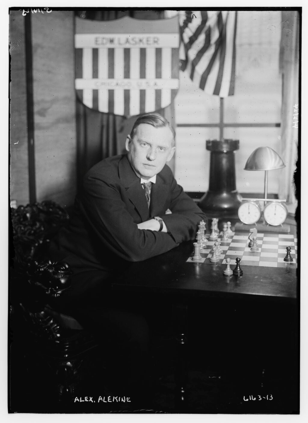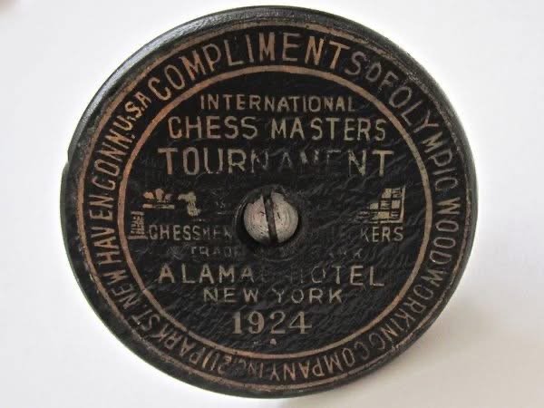 The most dramatic chapter in this reconstruction is Bird’s connection to the 1924 International Chess Masters Tournament in New York. The official tournament book shows that the event was organized with the support of Harry Latz of the Alamac Hotel, that Latz put up $2,500 and offered hotel hospitality, that the opening banquet was held there on 15 March 1924, and that the first- round drawing took place in the hotel’s Japanese Room on 16 March 1924. On the physical evidence of the surviving knight base shared, a tournament-related piece is inscribed “Compliments of Olympic Woodworking Company Inc. 211 Park St. New Haven Conn.”, together with “International Chess Masters Tournament,” “Alamac Hotel,” “New York,” and “1924.” In this reconstruction, that matters enormously: it suggests that the Park Street woodworking concern linked to New Haven was involved in producing commemorative or presentation chessmen for one of the greatest tournaments of the era. Since the knight form on that piece is stylistically very close, if not exact to Bird’s simplified type, the most likely explanation is that Olympic Woodworking Inc. was either Bird’s manufacturing arm, a closely related affiliate, or a successor/trade vehicle operating in the same Park Street orbit.