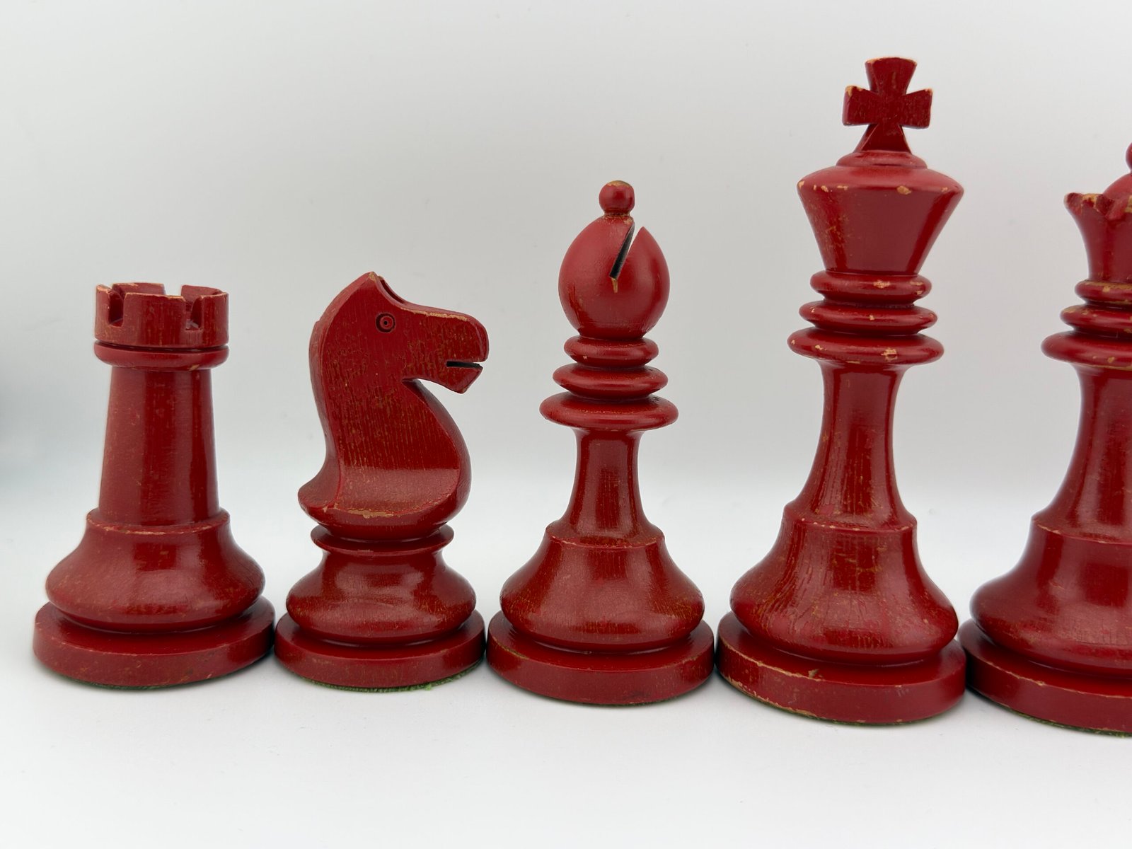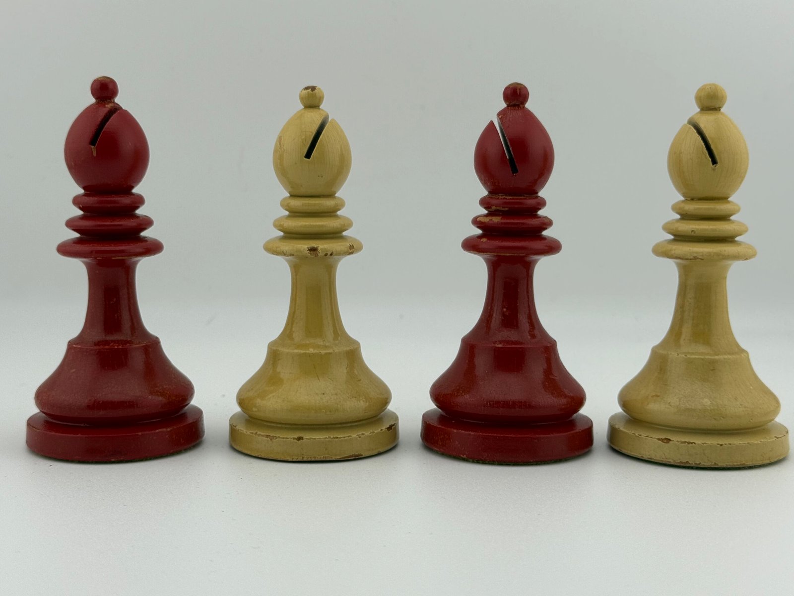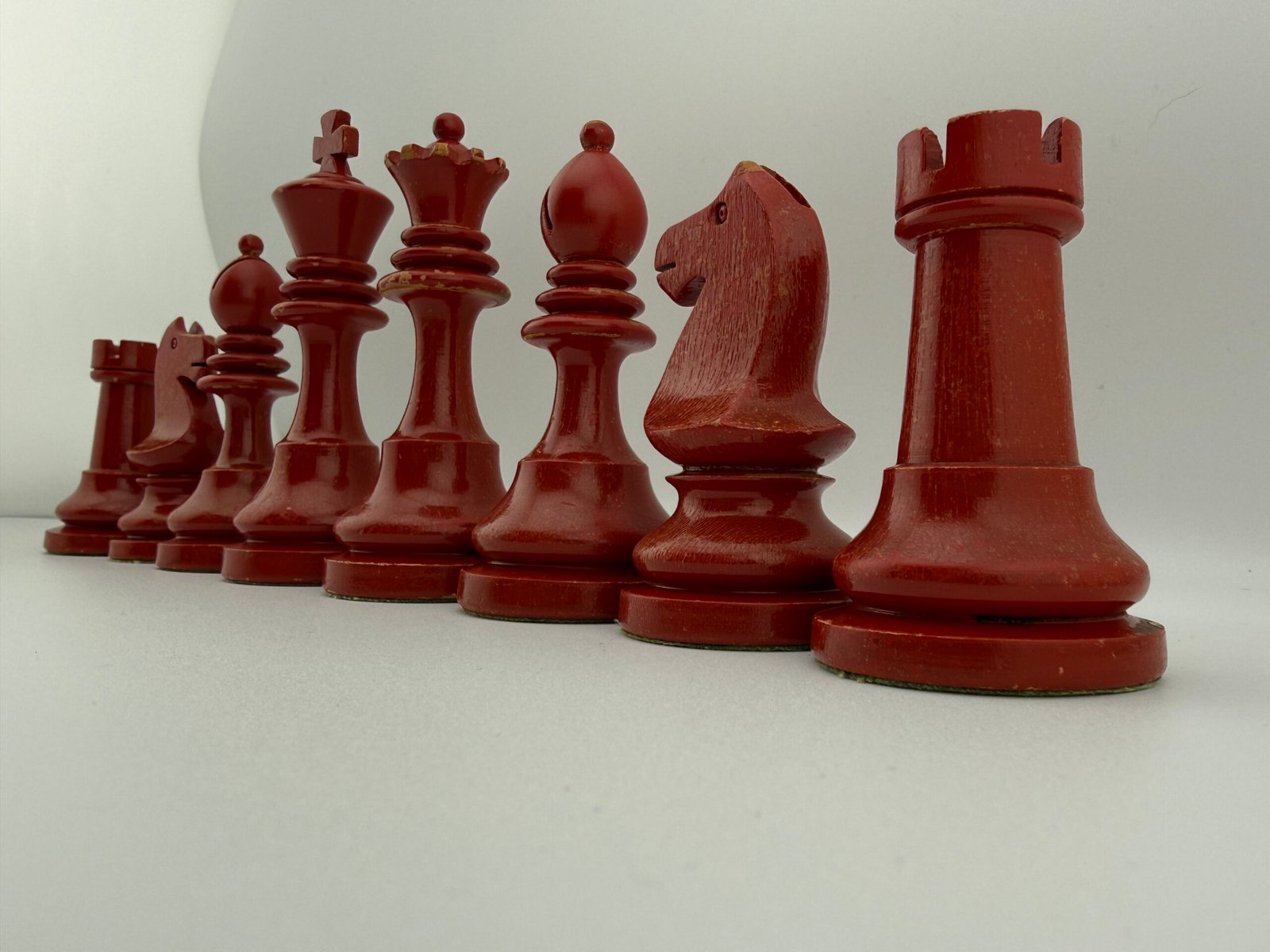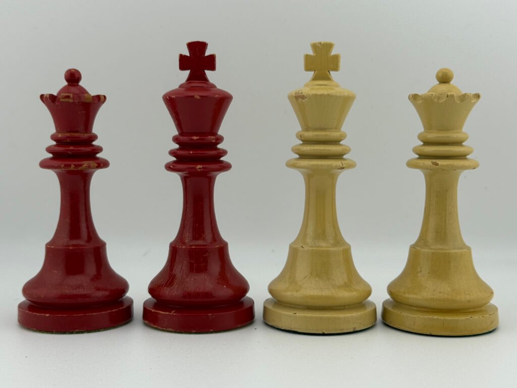 The 1920-30’s C.H.Bird’s Chessmen (Ultra rare Red & White 4 5/8″ King) chess set by “C.H.Bird / Olympic Woodworking Company Inc.”.