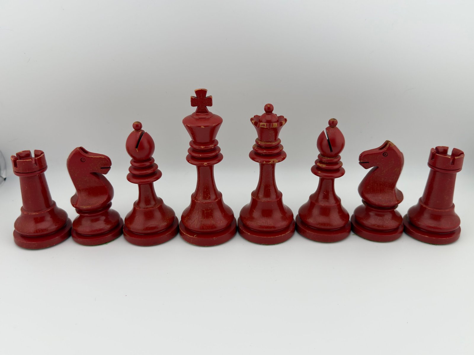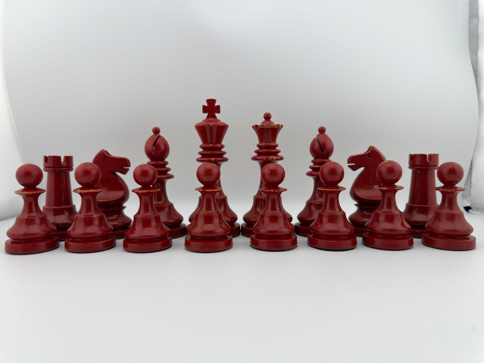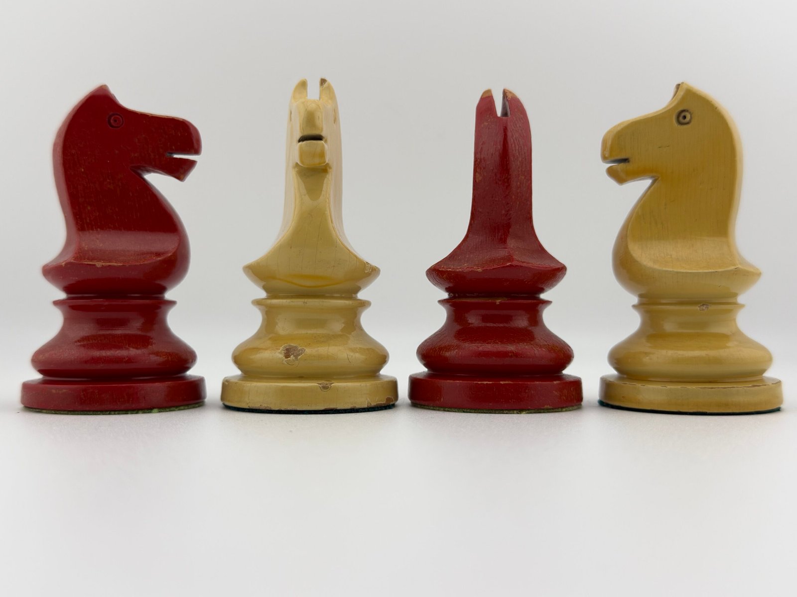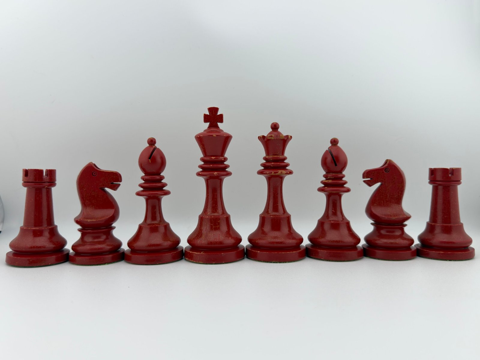 The 1920-30’s C.H.Bird’s Chessmen (Ultra rare Red & White 4 5/8″ King) chess set by “C.H.Bird / Olympic Woodworking Company Inc.”.