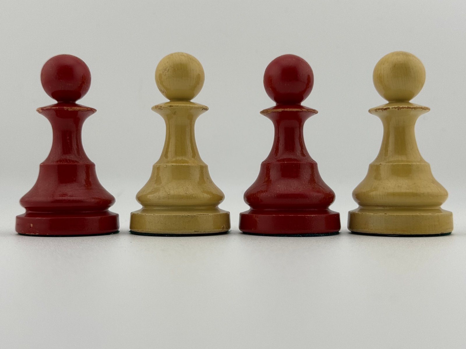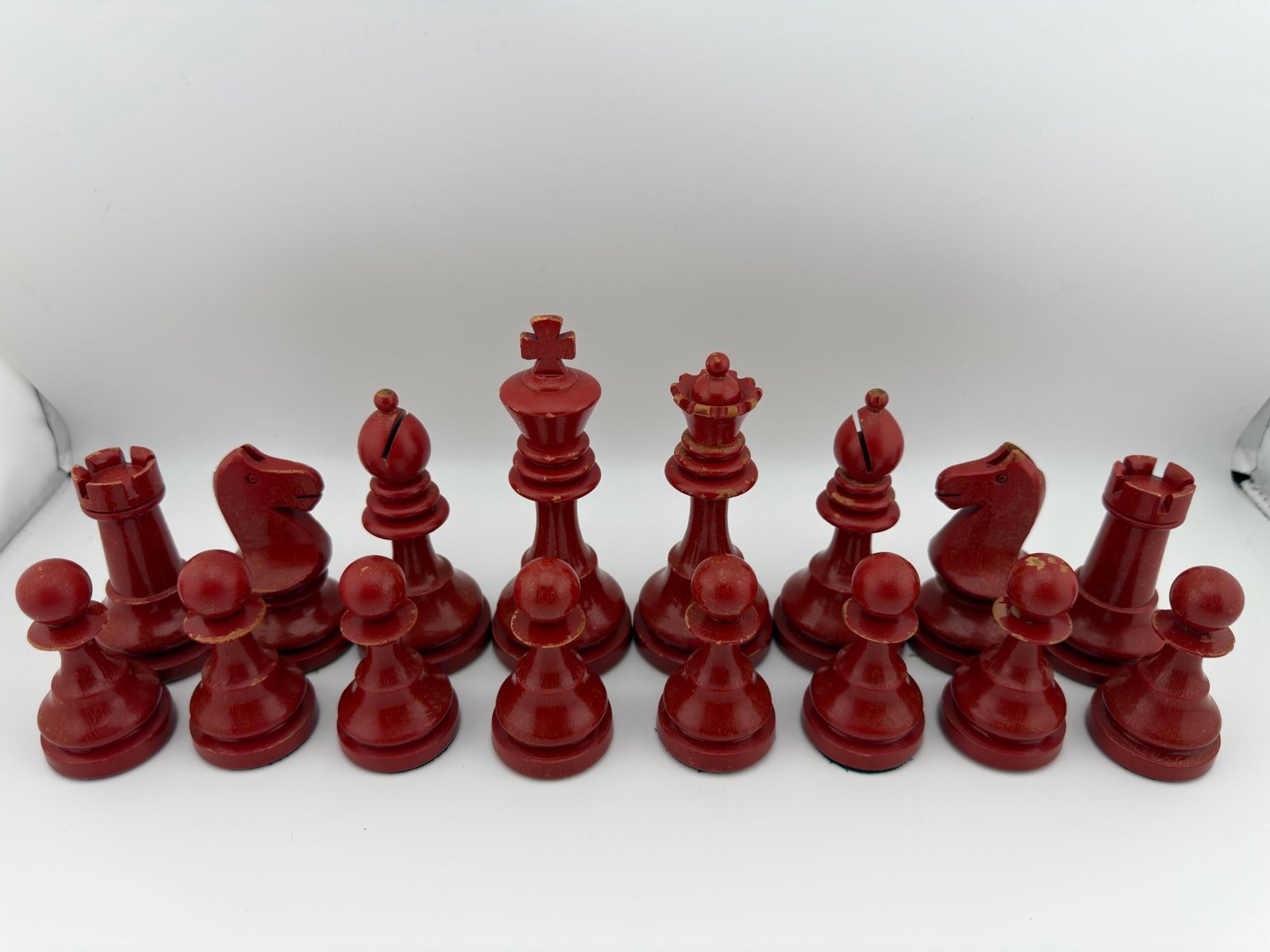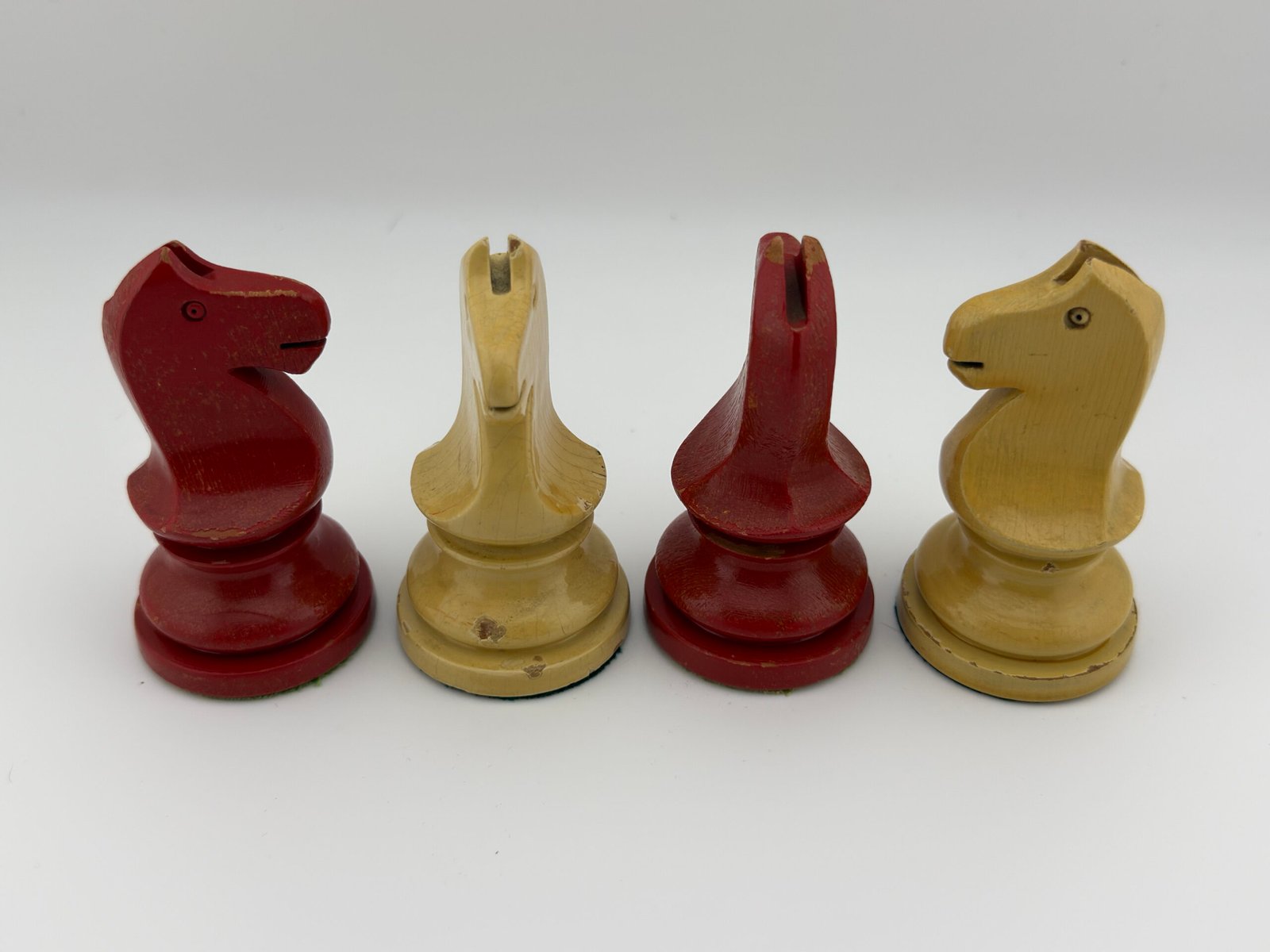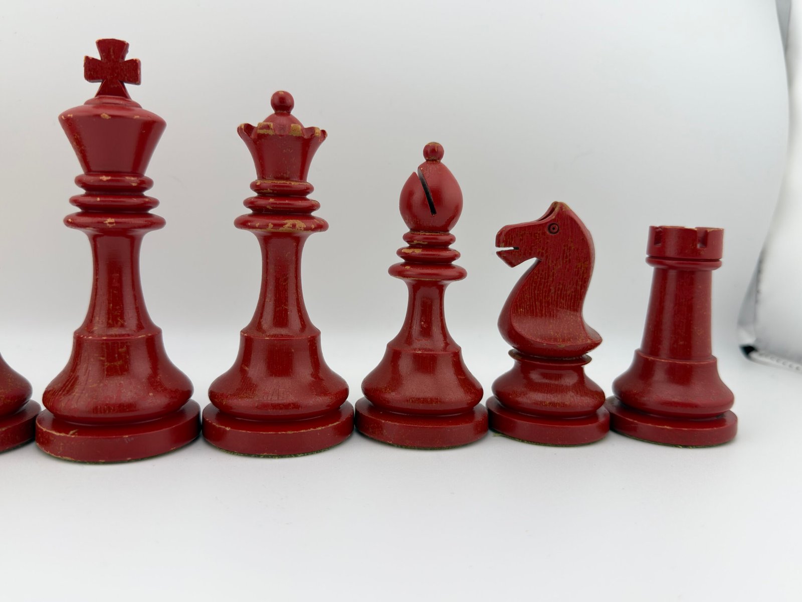 The 1920-30’s C.H.Bird’s Chessmen (Ultra rare Red & White 4 5/8″ King) chess set by “C.H.Bird / Olympic Woodworking Company Inc.”.