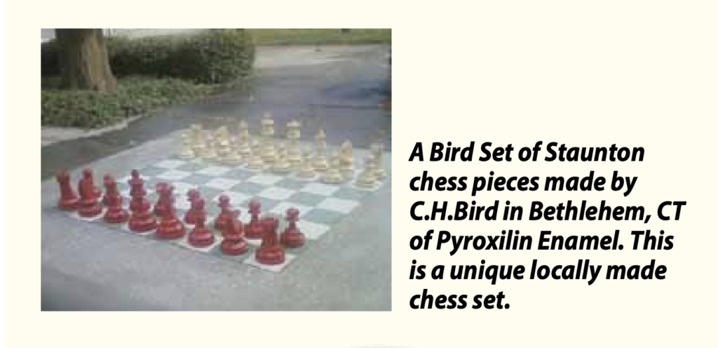 At some point around 1920, Bird appears to have turned from general industrial enterprise toward the specialized production of chessmen. Frank Camaratta’s research on Bird’s Chessmen, which reproduces and discusses the January 1922 Woodworker article “Manufacturing Chessmen,” identifies the maker simply as C. H. Bird, says the business began as a small concern in New Haven, and later moved to Bethlehem, Connecticut. The same research argues convincingly that Bird’s chess business had nothing to do with the English master Henry Edward Bird, who had died in 1908; the timeline fits Clinton H. Bird far better. Camaratta’s article also notes that altered labels survive showing a move from New Haven to Bethlehem, which is one of the strongest pieces of evidence linking the New Haven businessman to the later Bethlehem chess maker.